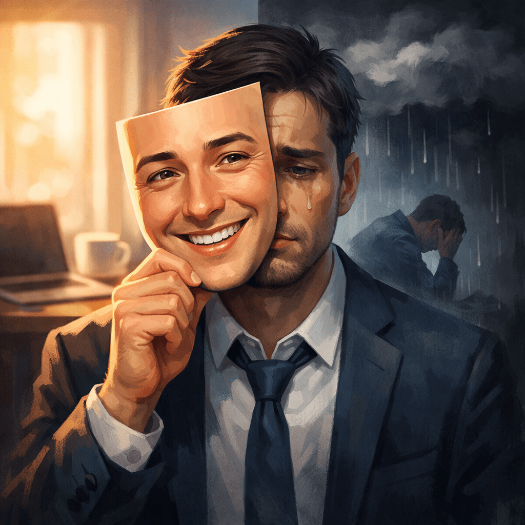 Smiling depression occurs when individuals consciously present themselves as cheerful and optimistic while concealing inner emotional pain. Maintaining this positive image requires constant emotional suppression, which can lead to exhaustion and emotional burnout. People with smiling depression may hide internal symptoms of sadness, emptiness, or hopelessness despite appearing outwardly fine.